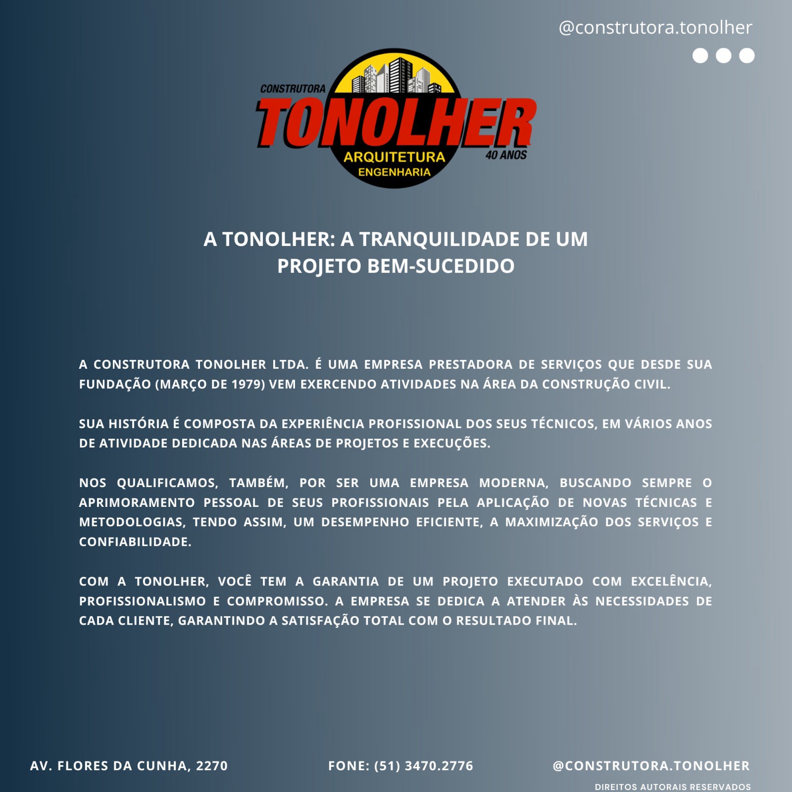 A Construtora Tonolher é sinônimo de qualidade e confiabilidade.